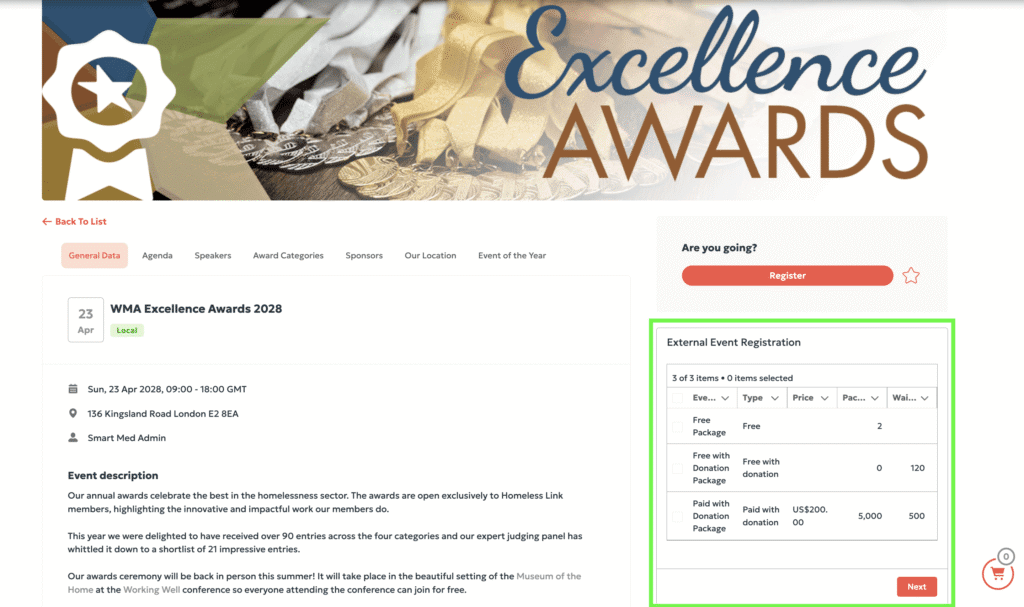 - Register directly on the event detail page, no pop-ups or multi-step modals.