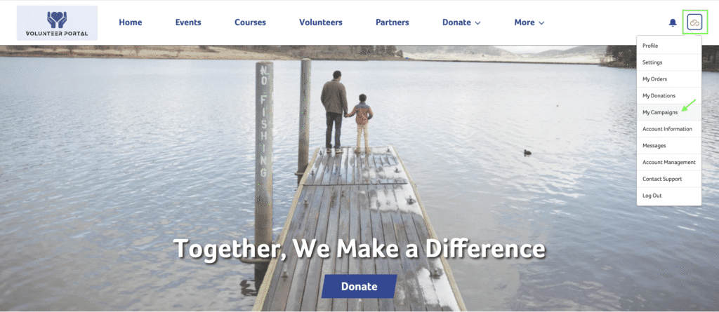 Once you’re logged into the portal as an administrator, start by navigating to your profile settings in the top right corner. From there, select the My Campaigns tab.