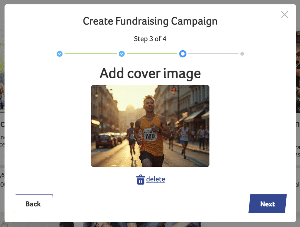 After defining the basic campaign details, John uploads a cover image to visually represent his campaign.