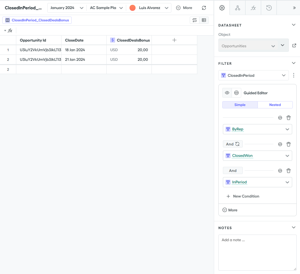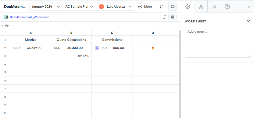 - Lump-Sum Rules: These rules calculate commission based on aggregated criteria, where the calculation is not applied to each individual item. This often involves summing a field from a data set to determine if a threshold has been met (e.g., a $500 bonus if total attainment exceeds quota). Because this logic relies on a single, aggregated output, the final payout amount is derived from a Worksheet.