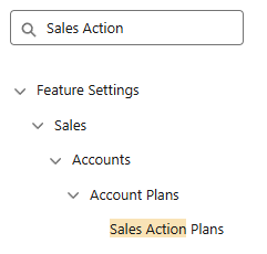 Setting up Action Plans is a straightforward process for administrators. You can find the main setup page by navigating to Setup, using the Quick Find box to enter “Sales Action Plans”, and then selecting the Sales Action Plans option.